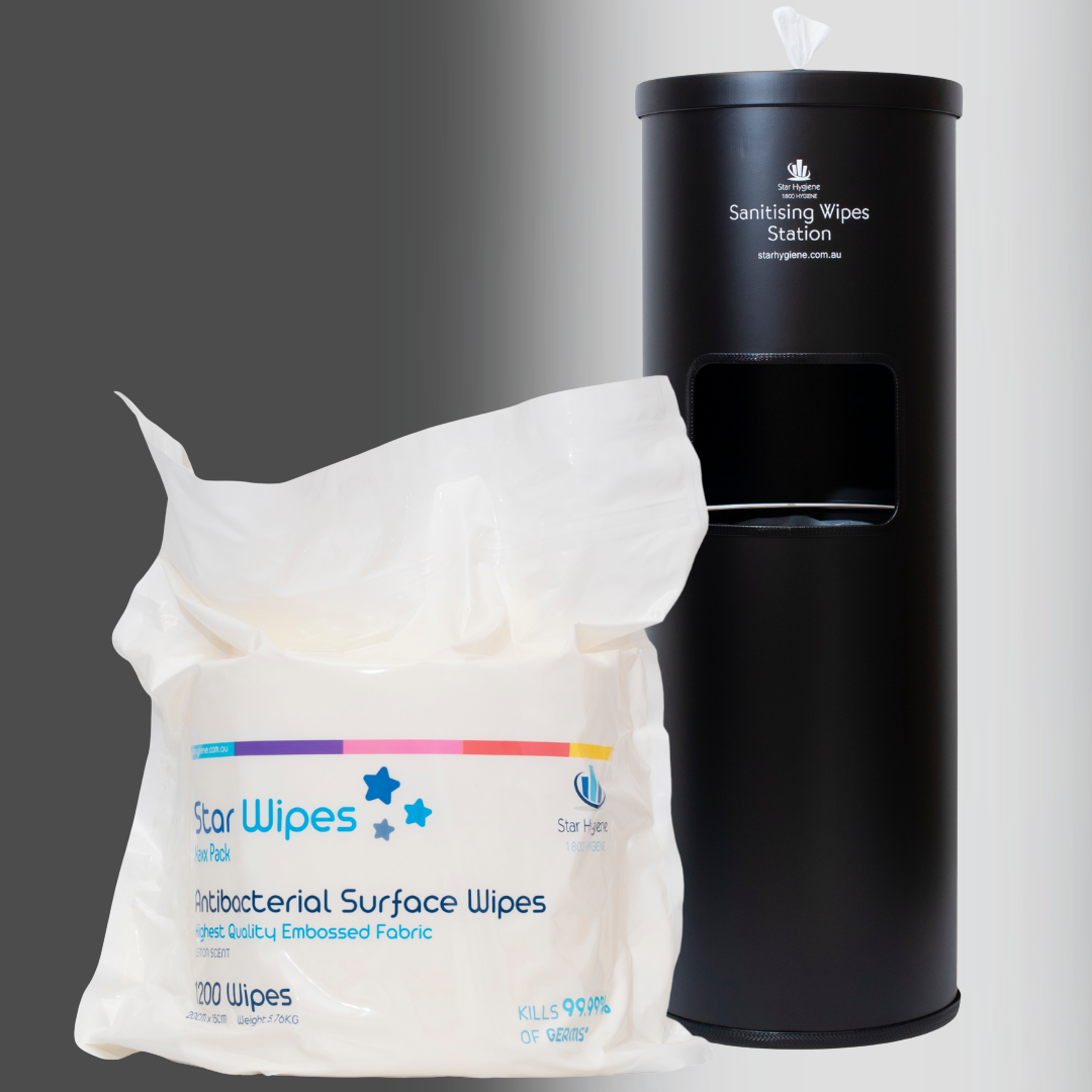 Original price $448.00Original price $448.00 - Original price $448.00Original price $448.00Current price $268.20$268.20 - $268.20Current price $268.20Out of stockBundle Included: 1 x Star Wipes Antibacterial Surface Wipes 1200 Wipes (CTN 4) 1 x Powder Coated Floor Standing Wipe Dispenser (Matte Black)
