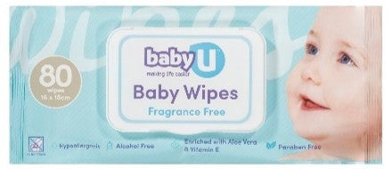 • Baby U Baby Wipes Fragrance Free 80pk (carton of 12)