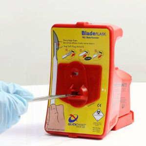 Remove, contain, and dispose of scalpel blades in one click with the Qlicksmart BladeFLASK. The world’s pioneering single-handed scalpel blade remover enables healthcare professionals to quickly and safely remove up to 100 scalpel blades. Embrace safety with the standard in scalpel blade removals. Hear the QLICK™ sound and be safe.
